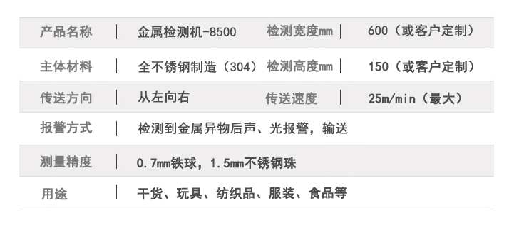 6. 金屬檢測機采用優(yōu)質(zhì)不銹鋼機身,防水密封結(jié)構(gòu)適應(yīng)冷庫潮濕環(huán)境也便于清洗